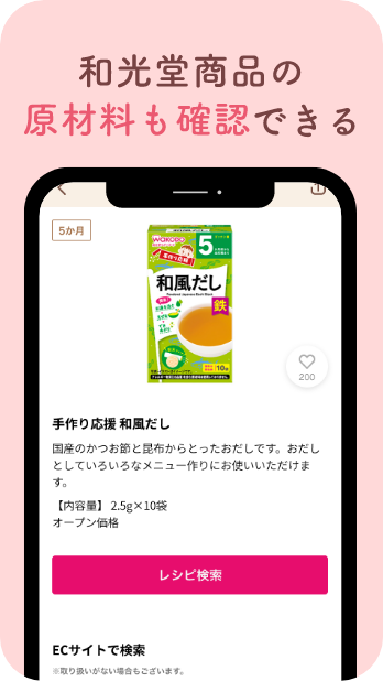 - 和光堂商(shāng)品を使用(yòng)したレシピを検索できる