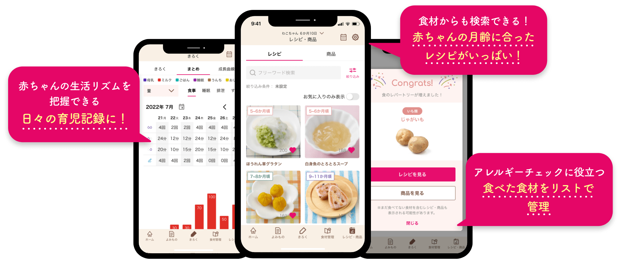 - 食べた時の好き嫌いや気になる反応も記録可(kě)能(néng)