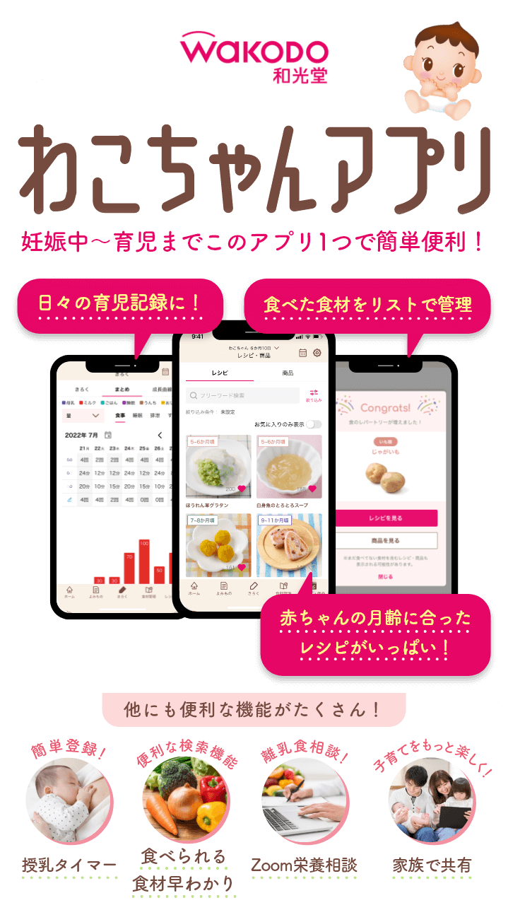 - 食材からレシピ・和光堂商(shāng)品を検索できる