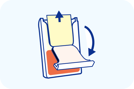ラベルの上部を起こしてフタをあけ、 フィルムを1枚取り出します。