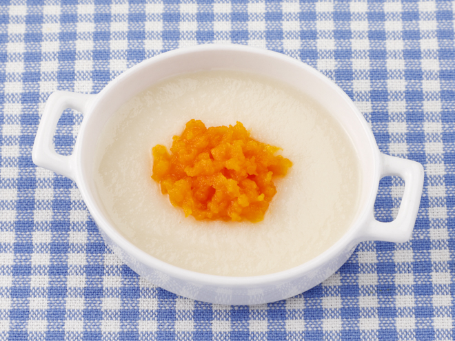 - にんじんはやわらかくなるまでゆでて、すり鉢ですりつぶします。