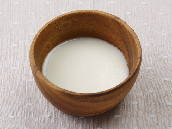 - 鍋に水30ml(大さじ2杯)と「和光堂レーベンスミルク はいはい」を入れて溶き、ひと煮立ちさせ(2)を合わせます。