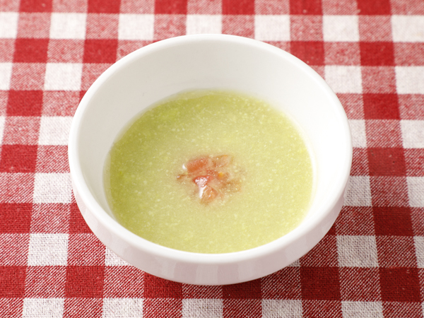 4. 器に入れ、湯むきして細かく切ったトマトを盛り付けます。